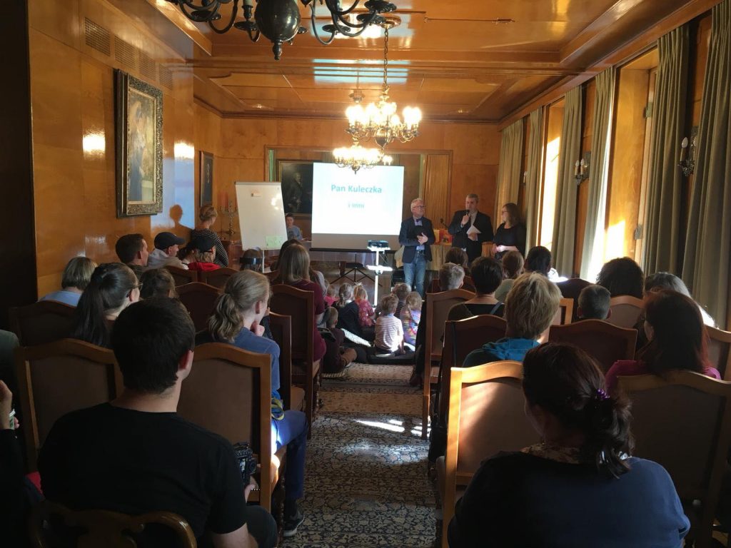 Intensywna promocja zaowocowała pojawieniem się na spotkaniu licznej grupy rodziców z dziećmi ze Szkoły Polskiej. Wielbicieli twórczości pana Widłaka nie zdołała odstraszyć nawet niesprzyjająca aura. Pisarza powitali w rezydencji Ambasady konsul pan Piotr Płachtański, prezes PTOK-a pani Aleksandra Michta-Juntunen oraz nauczyciel bibliotekarz ze Szkoły Polskiej przy Ambasadzie RP w Helsinkach pani Monika Flang.