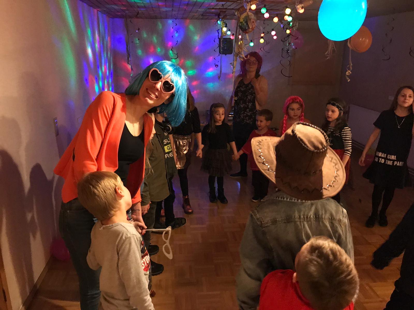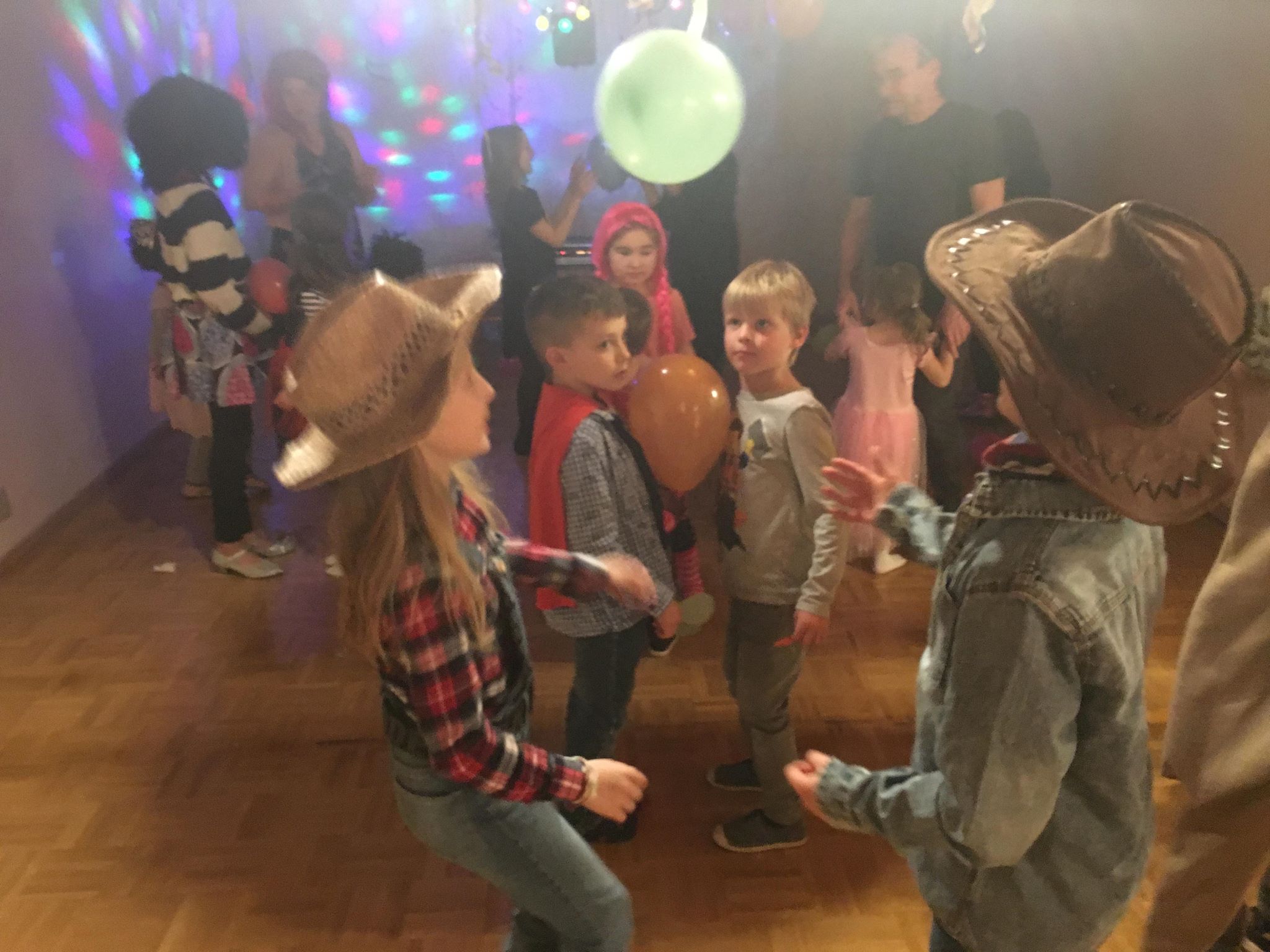 Dzięki pomocy nauczycielek salę przyozdobiły różnokolorowe łańcuchy, serpentyny i balony, a całość dopełniły kolorowe, dyskotekowe światełka. Zjawiskowy wygląd wprowadził dzieci w wesoły nastrój i zachęcił do wspólnej zabawy. Dzieci wystąpiły w ciekawych, kolorowych kostiumach, przebrane za bohaterów ulubionych bajek i nie tylko. Na parkiecie pojawiły się m.in. księżniczki, piraci, wróżki i kowboje.