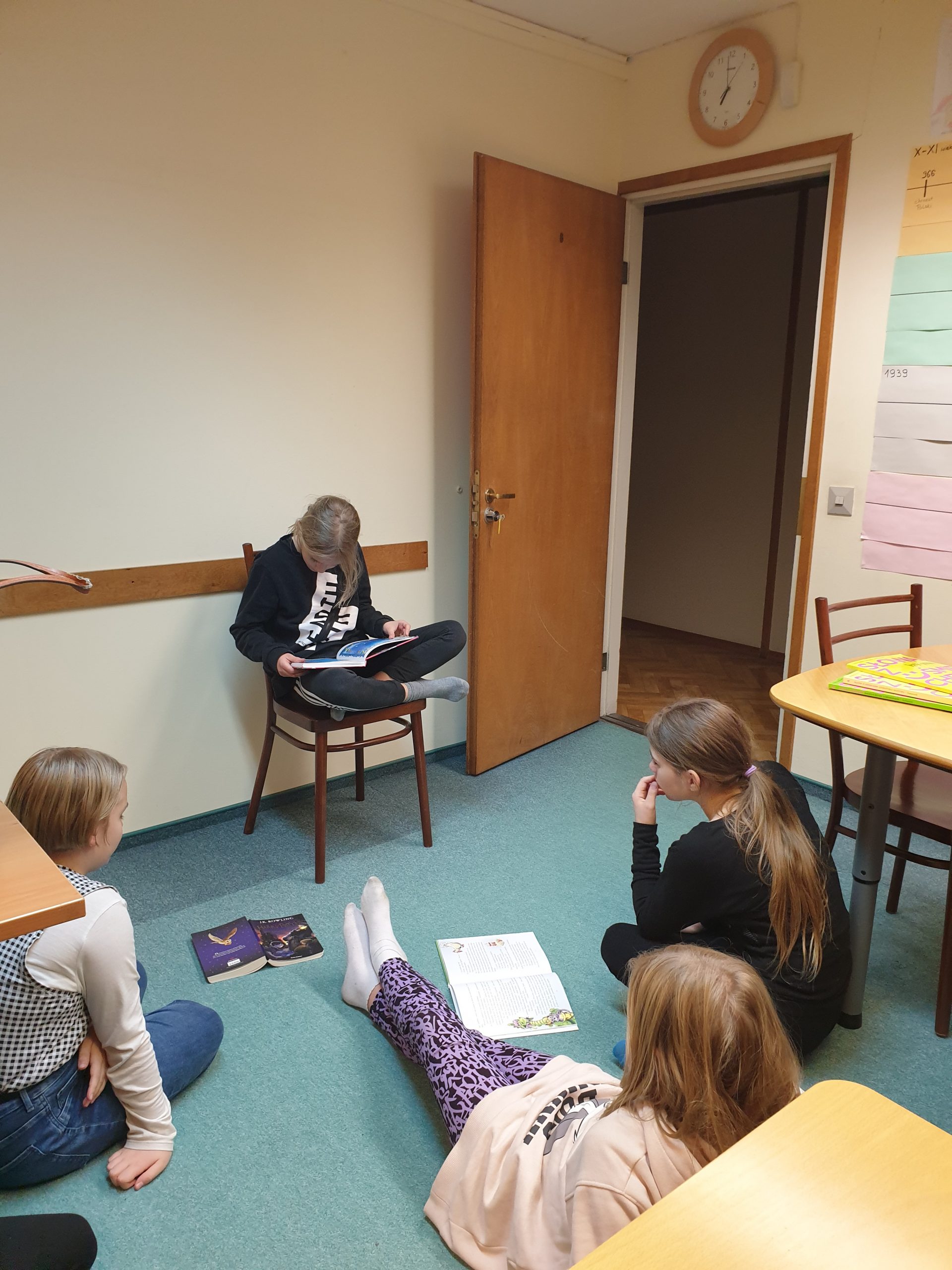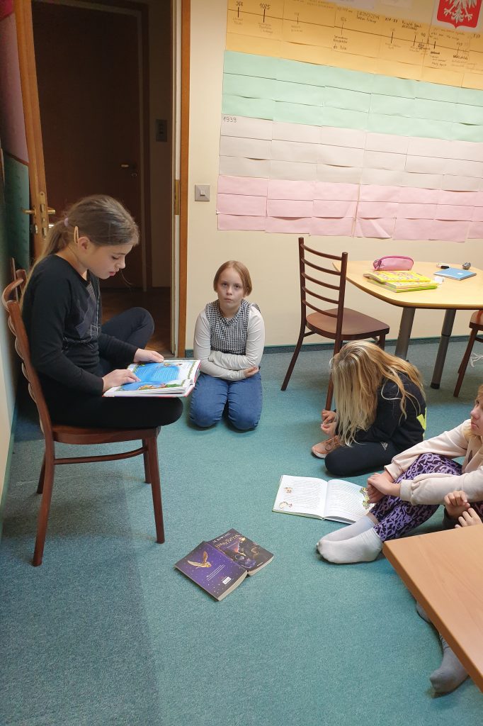 Klasa IV wraz z nauczycielem prowadzącym Agnieszką Chladny na lekcji języka polskiego uczcili Międzynarodowy Dzień Postaci z Bajek. Uczniowie czytali wybrane przez siebie bajki, komentowali żartobliwe historie, a także odkrywali jakże istotne dla bajek morały.