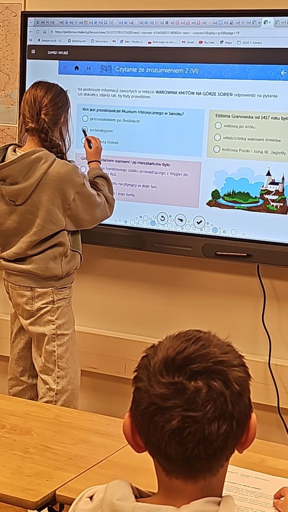 Na ostatnich zajęciach wiedzy o Polsce uczniowie klasy 5 wyruszyli w edukacyjną podróż szlakiem handlowym z Węgier przez Kraków na Ruś, korzystając z programu mTalent 🗺️📚. Następnie rozmawiali o zdrowiu – tworzyli nazwy różnych specjalistów i uczyli się, do jakiego lekarza należy udać się w razie konkretnych dolegliwości. Zajęcia zakończyły się wesołymi scenkami w przychodni lekarskiej, odegranymi z wykorzystaniem metody dramy 🎭😊. Było dużo nauki, kreatywności i dobrej zabawy.