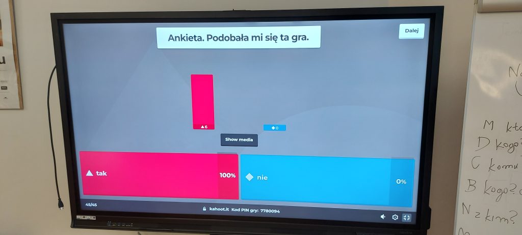 Podczas ostatniego spotkania przed feriami wzięli udział w językowych potyczkach – rozwiązywali quiz w aplikacji Kahoot